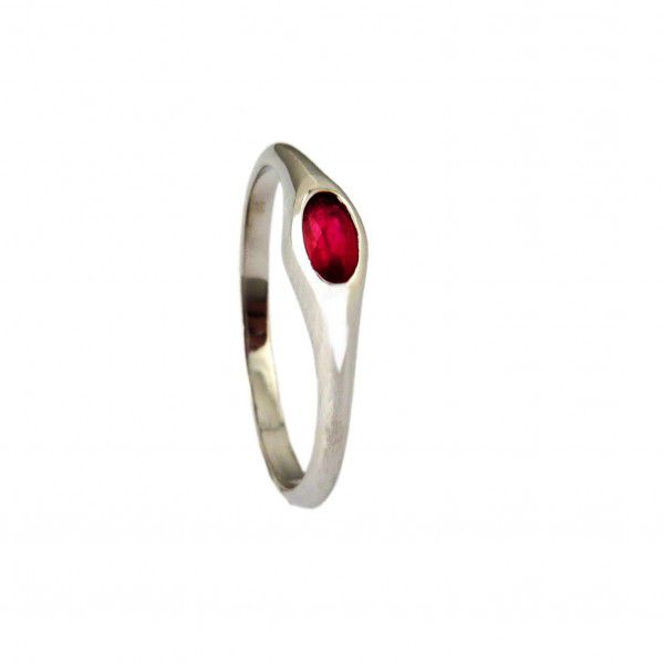 Anel em prata com banho de rodio, 1 pedra oval de 3 x 5 mm. Acabamento polido.