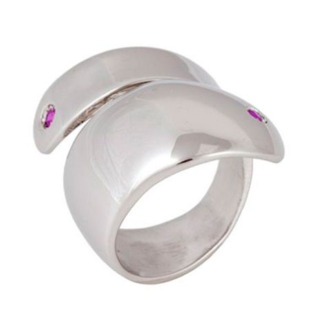 Anel em prata com banho de rodio, 2 pedras redondas de 2 mm. Acabamento polido.