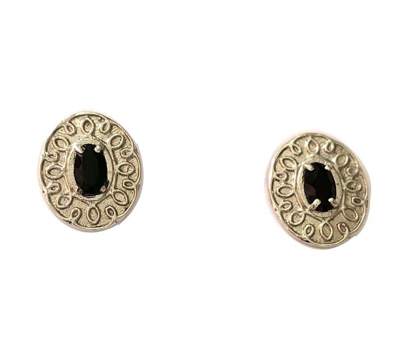 Brinco em prata com banho de rodio, dimensões 1 x 1,3 cm e 2 pedras ovais de 3 x 5 mm. Acabamento polido.