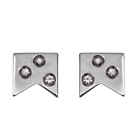 Brinco em prata com banho de rodio, dimensões 1 x 1 cm e 6 pedras redondas de 2 mm. Acabamento polido.