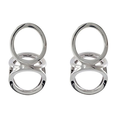 Brinco em prata com banho de rodio, dimensões 1,5 x 3 cm profundidade 1,7 cm . Acabamento polido.