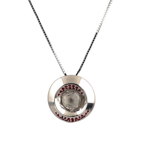 Colar em prata com banho de rodio, dimensões diâmetro 2 cm e 1 pedra redonda de 8 mm e 40 pedras redondas de 1,5 mm e 1,25 mm. Corrente veneziana 40/45 cm. Acabamento polido.