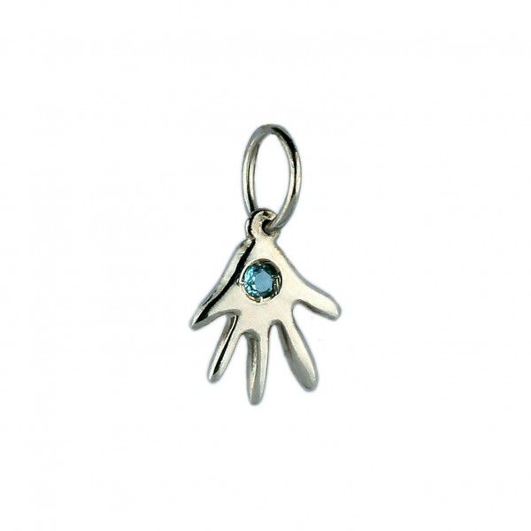 Pingente em prata com banho de rodio, dimensões 1 x 1 cm e 1 pedra redonda topázio de 2 mm. Acbamento polido. Pulseira ilustrativa